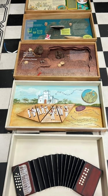 Las piezas adquiridas representan cuatro tipologías de la Colección Signo: Ocarina Tairona, Silbato Chimú imitador de canto de aves, Silbato Ave de Agua forma almeja y Silbato Dedal Doble. Estas piezas habitaron una vitrina museográfica dentro de un módulo de contextualización sobre los instrumentos sonoros prehispánicos americanos, como parte de la narrativa curatorial de la exposición.